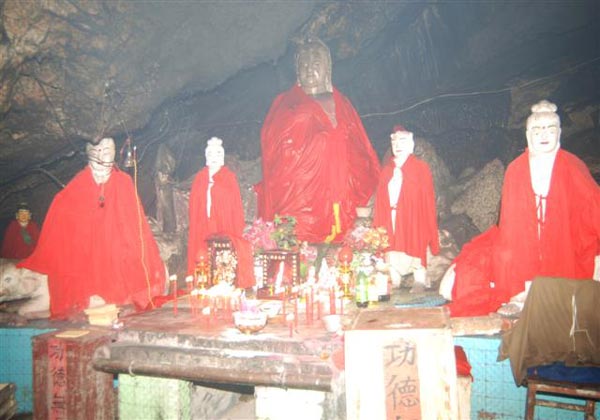北斗星移,劫数完满,否尽秦来。改革开放,创建和谐。佛力感召,紫气东来,虔城弟子,四处结缘,八方募化,如鸟筑巢,愚公移山,不辞辛劳。建观音、文殊、普贤神象于洞内,洞外先后建起弥勒,地藏、达磨,韦陀等殿堂。如今山门雄踞,禅房清雅,十余亩佛宅,缘树成荫,鲜花盛开。每逢庙会,朝山拜佛者常达数千人。