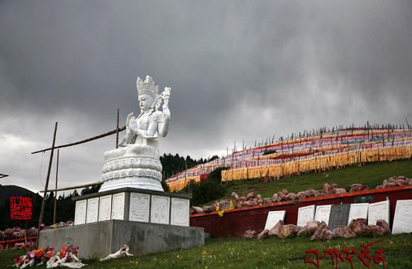 现在我最敬爱的法王静静地安坐在扎西持林这片圣洁的土地上,他慈爱地关注着扎西持林,关注着他最爱的心子,也同样关注着所有的众生。他的脸上流露出慈母般的真情,感动着所有见到这尊佛像的人。难怪,我亲眼目睹许多弟子来到法王像前,都止不住地痛哭,毫无顾忌。哭吧!我也这样哭过。哭吧!不要认为只有小孩才有哭的权利。哭吧!把所有的磨难、痛苦、委屈,所有藏在内心深处,不为人知的,压迫你,恐吓你,折腾你的磨难,统统痛痛快快地哭出来!此时此刻我突然感到能哭也是一种非常难得的享受。