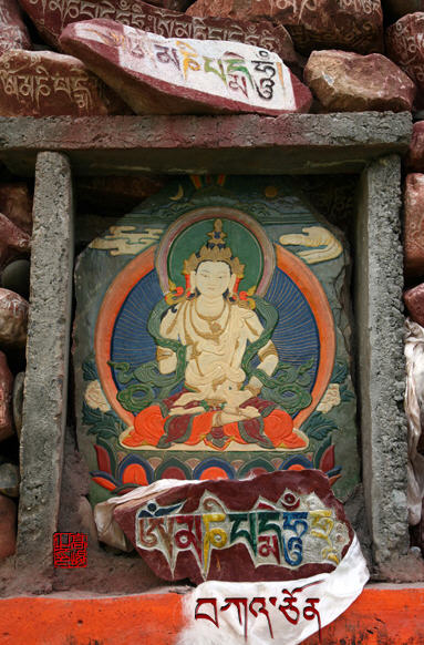 土登师父是上师的侍者。他待人非常热情,他把我安排在烧水间边上的一间屋子里,一进屋就看见对面墙上挂着法王的唐卡,我跪在地上呜呜地哭起来,就如见到久别的亲人。土登师父劝我不要哭,担心会引起高原反应。我还是止不住地哭,止不住内心那种思念、痛惜、内疚的泪水。