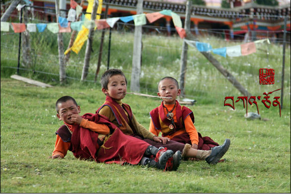 要感谢土登师父把我安排在这间有烟的屋子居住。烧开水的藏族人是阿妈的小儿子,他高高的个子,大大的眼睛,虽然穿着汉人的衣着还是遮不住那种纯清的藏人气质。天还未亮他就开始烧水,每当我从房间里走出来,他就会不好意思地用汉语说有烟。用木柴烧水总会有烟的,但是一会儿就随风飘散了。我看出他的心思,连忙回答说:“没关系,没关系。”确实是没关系,人如果连这点苦都受不了,那这个人还有什么用呢?阿妈的小儿子带着四岁的孩子为来扎西持林的师父和居士们烧开水。晚上和孩子就睡在烧水间的地铺上,生活得非常清苦。有一天,我在房间听到小孩的咳嗽声,知道他已经醒了,走进去一看,他爸爸不在,孩子躺在地铺上也不呼喊,二只小手不停地抹眼泪。我真的好感动,怕他冻着,我连忙找衣服给他穿。这天有点冷,我找来找去只有一件小夹衣、小夹裤,再也没有别的衣服,孩子很瘦,小胳膊小腿瘦得让人心疼。小孩前二天咳嗽吃的是大人的药。有一次,一位汉地居士来打开水,被灶洞里冒出来的烟熏到了,连连说“呛死了,呛死了。”我看了看她,又看了看躺在地铺上才四岁的孩子,没有说话只是心中沉沉的,我陷入了沉思中。