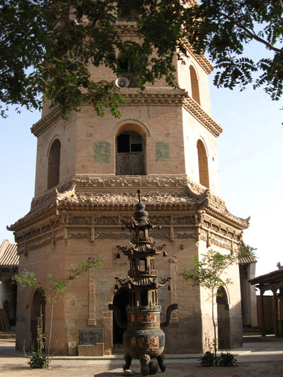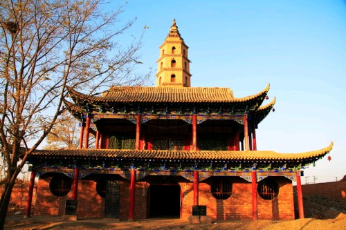 位于宁夏平罗县姚伏镇,寺内有田州古塔。田州古塔,始建于西夏年间,现存的古塔是乾隆三年宁夏大地震后,在乾隆四十八年由维秀和尚主持重修的。是一座平面呈六角形九层楼阁式砖塔,高约38米,塔顶呈六边覆斗状,塔底直径为7.5米,南北各有一门。底层檐下雕刻着足以乱真的仿木结构的瓦垄、椽头、横额、头拱和下垂的荷花头。还雕饰有佛像、人物故事。这些砖雕玲珑剔透、工艺娴熟、异常精美,显示出高超的技艺。塔的结构新颖别致、风格独特,在宁夏境内所有古塔中属罕见。