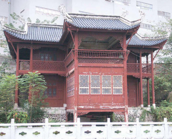 贵阳市级文物保护单位“大觉精舍”,又名华家阁楼,为民国十三年(1924年)当时贵州最大的企业家华之鸿所建,原为华氏私家佛堂。民国十三年(1924年)佛堂建成时,天台宗名僧天曦法师云游到贵阳,于是华之鸿聘天曦法师为精舍住持。当时大觉精舍内经常居住约30名僧侣,多时可达60人左右,所有开销全由华家提供,华之长女及幼子,均依天曦披剃。民国三十年(1941年)天曦法师圆寂后,先后由果明、昌明、寄生担任住持。抗日战争期间贵州广播电台设在精舍内,这使得大觉精舍所在的小街得名“电台街”。民国三十八年(1949年),华氏家族又聘怀一法师为大觉精舍住持。1949年后,大觉精舍被贵阳市教育委员会、市文化局、市文物管理委员会、市图书馆等单位用作办公楼。文革期间,大觉精舍遭到破坏,精舍所藏的6362卷影印《碛砂藏》也惨遭焚毁。近年,大觉精舍得以修复。现在大觉精舍除佛楼外,整个建筑群其余建筑均被出租给商家用于经营餐馆。