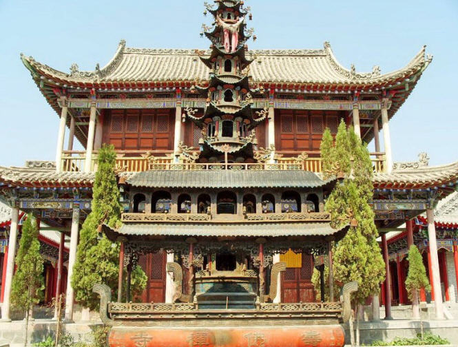 寺内殿堂奉华严三圣、西方三圣、地藏、弥勒、五方汉梵金刚菩萨、十八罗汉、护法善神等,宝塔供奉七如来,圣像慈悲庄严,神采奕奕,栩栩如生,使朝山游人香客吧为观止。