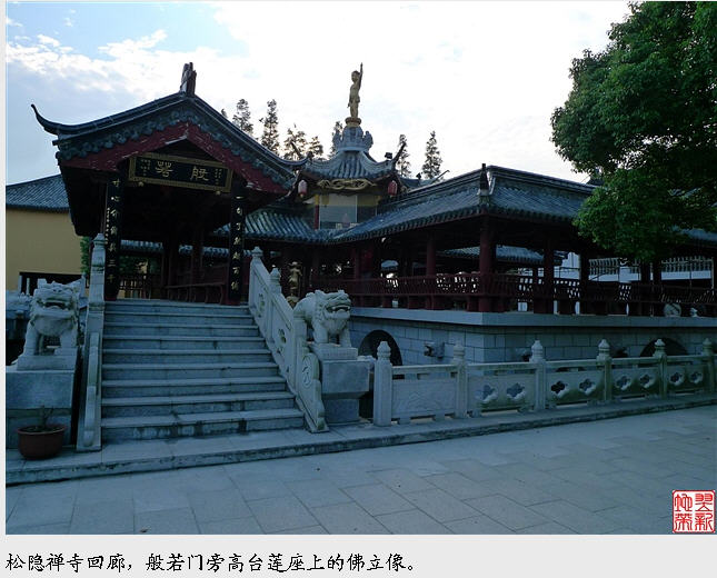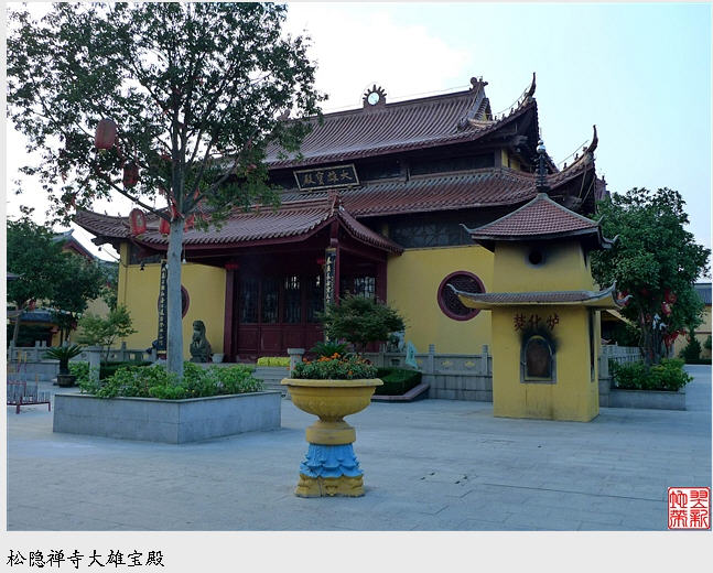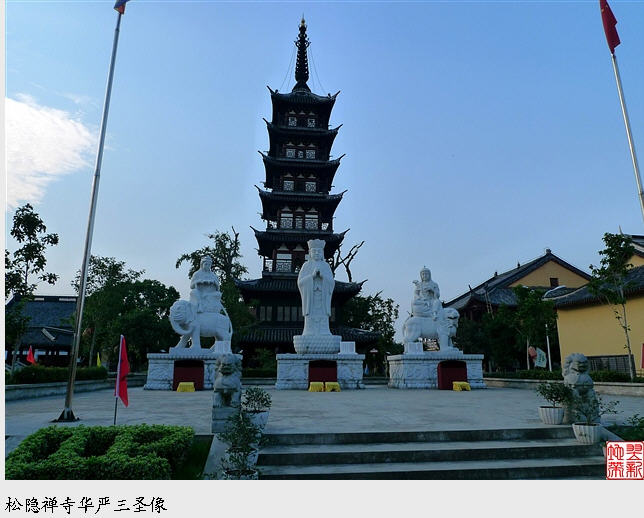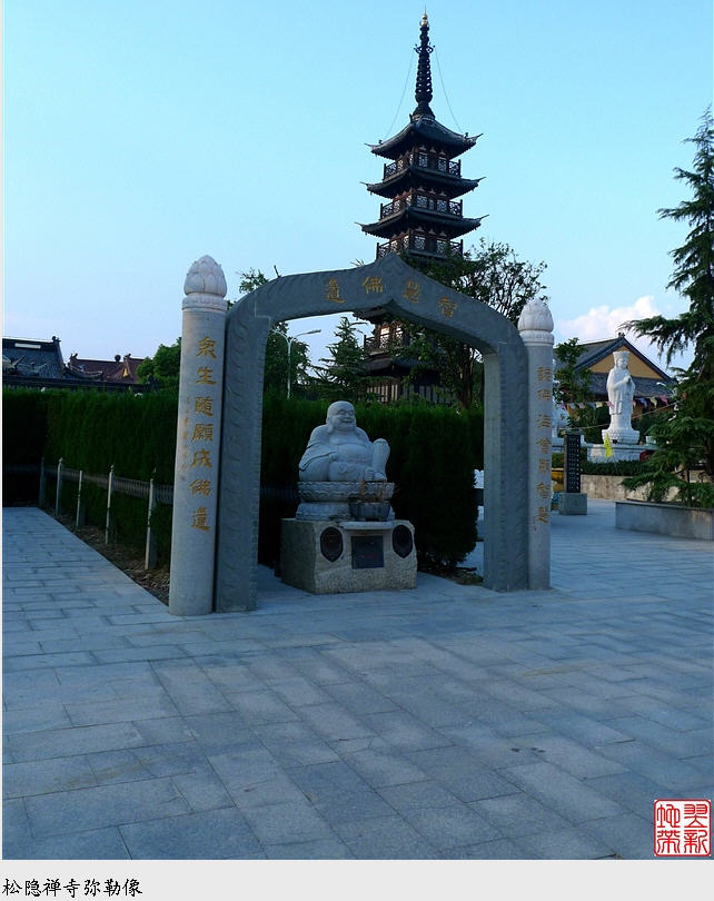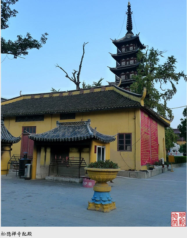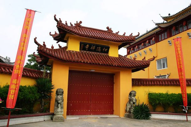 素有“浦南第一山”之称的松隐禅寺,是金山区最大的佛教圣地,座落于上海市金山区松隐镇华严塔路58号。松隐禅寺始建于元代至正十二年(1352年),原名“松隐庵”,由僧人唯庵禅师(又名德然和尚)所建。唯庵禅师俗姓张,华亭人,七岁到杭州天龙寺出家,后到江苏雾霞山师从石屋禅师,石屋住处庵前有棵松树,浓荫叠翠,覆盖满地。有一天,石屋禅师以手指松树对唯庵说:“子犹是松,后当广荫于人。”又说:“缘在吴淞。”于是手书“松隐”二字给唯庵。唯庵遵师教诲,不久还归华亭赤松溪,结茅而居,闭关三年,修持不出,里人(邻居)奇而敬之。里人吴山舍地捐款,集资为唯庵建庙,于元代至正年间(1357年)竣工,唯庵遂以“松隐”为庵名。