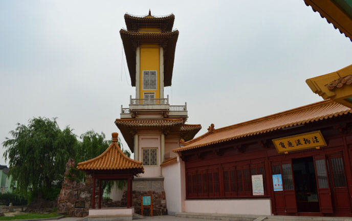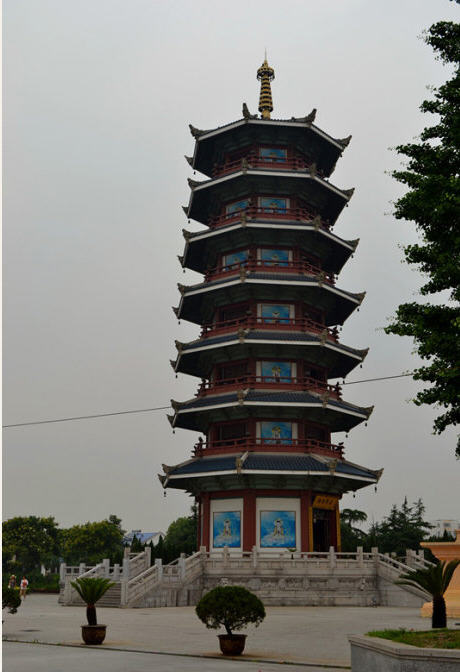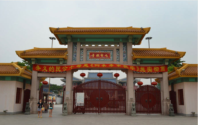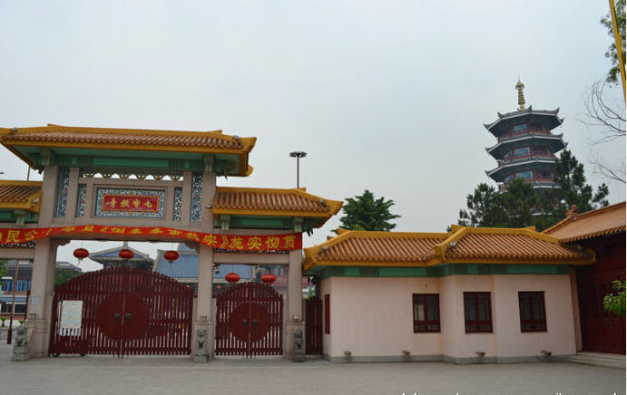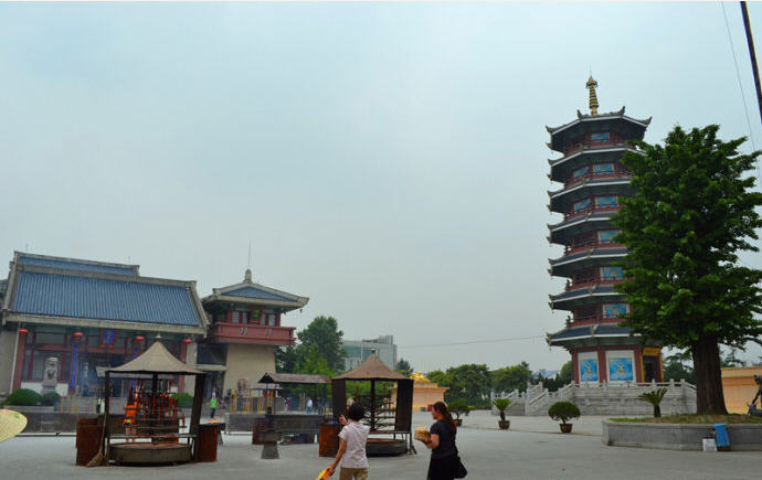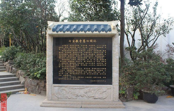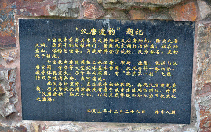 七宝寺又名“七宝教寺”,位于上海市闵行区七宝镇,是通往青浦、松江的必经之地。现在的七宝寺乃移址重建于2000年,汉唐建筑风格,朴素大方,庄严肃穆,有山门、钟鼓楼、天王殿、大雄宝殿、经堂、法堂、藏经楼、宝塔及花园。寺临蒲汇塘河与横沥泾河交汇处,别有景致。有趣的是,上海新建寺院的佛殿均相当宽敞开阔,总会留出足够的空间供善信在殿中念佛,随见三三两两、四处落座,更显佛法的慈悲与圆融(这在北京是不能想象的)。引人注目的是花园中的石刻经幢和广场中的佛塔,皆精美非凡,历史上,寺院皆依塔而造,塔代表了佛的功德报身,而经幢应为佛的法身,因此,上海新建寺院对于塔与经幢的重视是相当令人赞叹的。