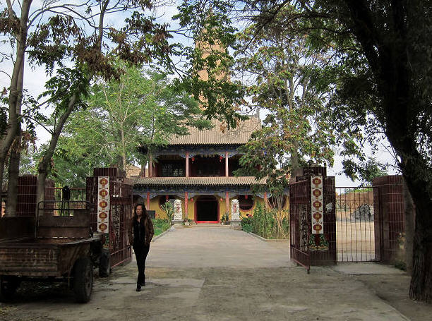 柳荫古寺三门空,宝塔巍巍掩映中。