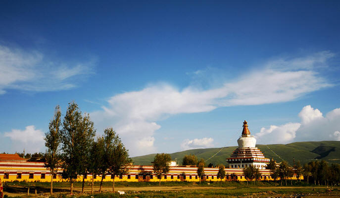 矗立在格尔登寺院西南侧的格尔登寺大佛塔是雪域高原上屈指可数的几座大型佛塔之一。1987年10月由政府拨款和自筹部分资金修建的格尔登寺大佛塔竣工开光,正式向信教群众开放、朝拜。