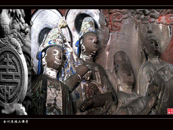 简 介:涞滩二佛寺石窟位于合川市历史文化名镇涞滩古镇二佛寺内。石刻造像大多开凿于南宋淳熙至嘉泰年间(1174-1204年),共有大小造像42组(龛)1700余尊,集中分布在二佛寺下殿北、南、西三面岩壁上。造像内容以高达12.5米的释迦牟尼说法像为中心,采用分层雕刻,虚实相间的方式创造了佛祖、菩萨、罗汉、比丘等众多形象,各龛和各组的内容既相互独立又在总体格局上保持一致。除以数量众多、形态各异的罗汉造像为一大特色外,释迦牟尼与禅宗六祖等造像则在内容和形式上反映了禅宗的大部分历史进程和禅宗的宗旨。对研究中国石窟寺艺术的发展,禅宗的衍化,以及当时社会的经济、文化状况提供了丰富的实物资料。