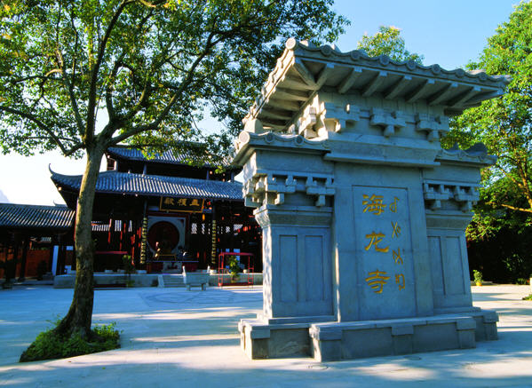 海龙寺位于四川省雷波县马湖湖面东北角,岛上绿树掩映,风景秀丽,它的形状如龟,俗称金龟岛,岛上面积为11.78亩,金龟岛上有省级文物保护单位海龙寺(又名孟获殿),是建造于明万历17年(公元1589年),为纪念三国时期彝族首领孟获而建造。寺内供奉三尊神像,它是我国唯一的一座彝族寺庙。是马湖风景名胜区的一颗璀璨明珠和核心景点,来客有“来雷波不到马湖等于没来雷波,到马湖没到金龟岛等于没到马湖”之说。