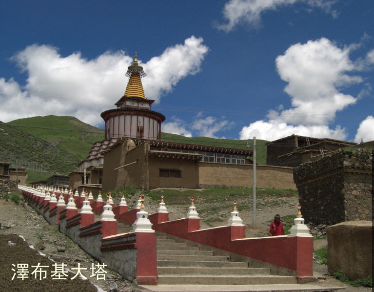 泽布基寺地处海拔3500米的四川省阿坝州壤塘县中壤塘乡,是觉囊派重要的分寺,现在寺内有常住僧人450人,它是觉囊派冉那西日仁波切成立壤塘寺后分离成三大寺庙中,最早成立的寺庙,其他两个寺庙是确尔基、藏瓦寺。泽布基寺众僧以觉囊派的时轮生圆满二次第及金刚萨垛为主修。现寺内有很多神奇珍贵的文物,包括:从下泽布寺飞来的根钦杜布巴像、三次讲话的度母铜像、在火中三天没有融化的长寿佛铜像、大土司供养的金马鞍,还有第一世寺主留下的金刚善护法的唐卡等。