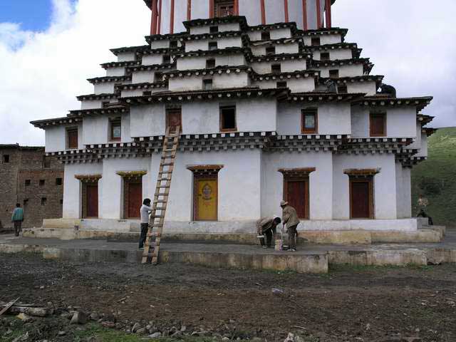 中年时在青海果洛、四川康区灌顶传法,所得的供养修建了泽布基寺金刚萨垛闭关室,新修了以弥勒佛为主尊,八大菩萨为眷属的弥勒殿,并维修吉祥大佛塔。