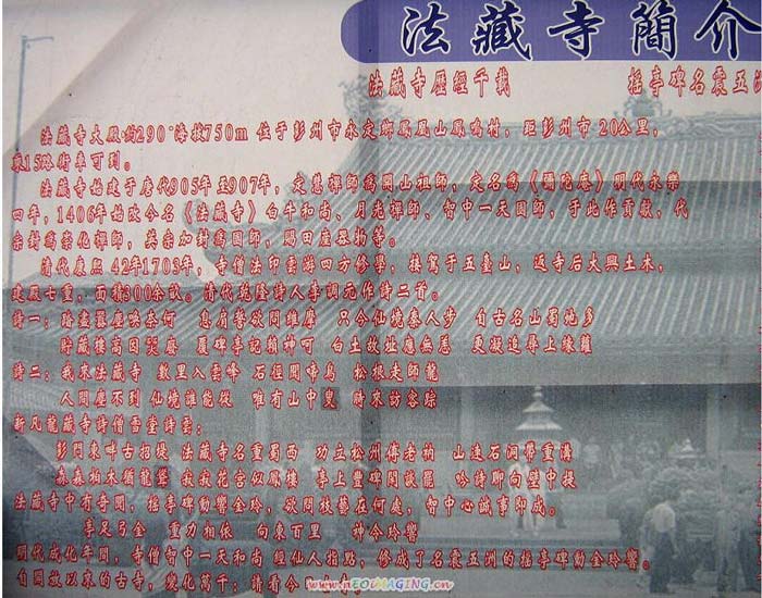 法藏寺历经沧桑变幻,寺内建筑几经修葺,与千年前相比,已大不相同。然时间在此地似乎流动得极其缓慢。置身其中,耳闻钟磬之声,眼观经文,心诵佛法,千年如一日。我资质浅陋,不通佛法,却也能在这千年古寺中,寻得心之安宁。