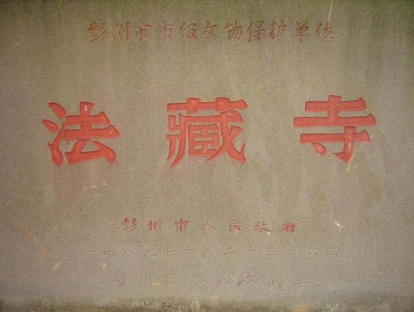 法藏寺始建于唐哀宗时期,即公元905年至907年间,初名弥陀庵,规模尚小。明代成化年间,智中一天禅师晚年来到彭州,在弥陀庵颐养天年,主持修建了名震川内外的“摇亭碑动金铃响”奇观。此事被明成祖得知后,欣然挥毫御书“明授古刹”,赐九龙金匾,并于永乐四年将弥陀庵更名为法藏寺。清朝康熙四十二年,法藏寺高僧法印禅师为弘扬佛法,普渡众生,大兴土木建殿堂七重,宏伟壮观,名重蜀西。