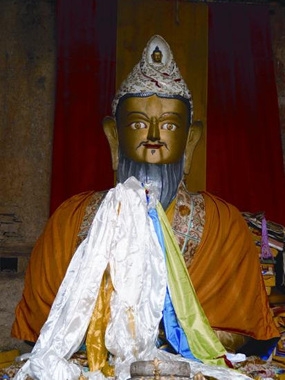 往昔龙萨娘波尊者在修建寺院时,以甚深智慧启显了工巧妙力,雕塑了莲花生大士和自己的像,并亲手为之装藏,当时龙萨娘波问自己的雕像:“像我否?”雕像答曰:“甚像甚像!”据说见此雕像如亲见龙萨娘波般之加持,使之成为柯日寺之宝顶庄严,众宝藏之最上精华。甚至在当地若有不吉祥之事,可见莲花生大士塑像和龙萨娘波的尊像脱下头顶之佛冠,抑或塑像大汗淋漓等奇异显现。
