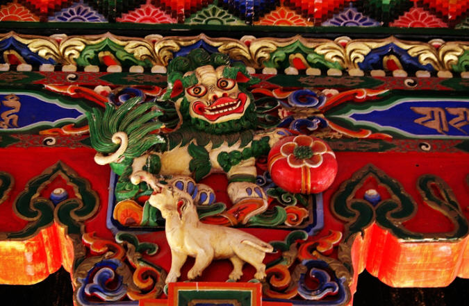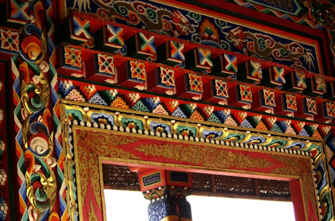 大经堂第二层是可容纳三百余名僧人的嘉木样协巴本生殿,东面有噶丹庙,西面有多闻子庙。
