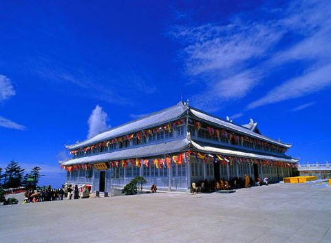 进入山门,来到观音殿,虽然峨眉山并不是观音菩萨的道场,但在这最高的汉传佛教寺院,在云中的观音还是会给人一种神秘感。步过观音殿,就到了玉佛殿。殿内有玉佛一尊,高约1.2米,1989年7月缅甸佛教徒赠送。看着这尊玉佛,通体温润,顿时让人倍感亲切。