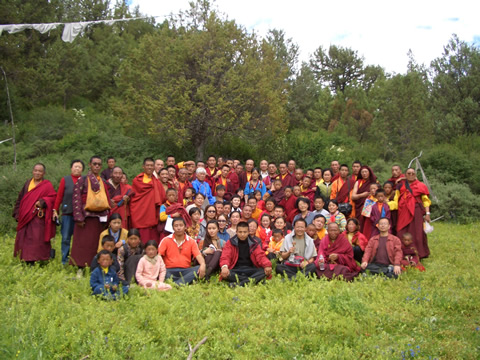 扎西群培活佛和藏汉两地弟子在旺波特登西绕奥责儿法王闭关处
