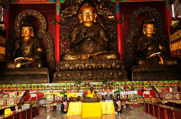 为了宏大佛法,海能召集能工巧匠,绘制各种佛像两百余尊。藏经楼上的宗喀巴大师像,堪称艺术珍品。仿制雕塑的全身黄教大威德,由西藏活佛亲手塑成,面善心慈,栩栩如生。