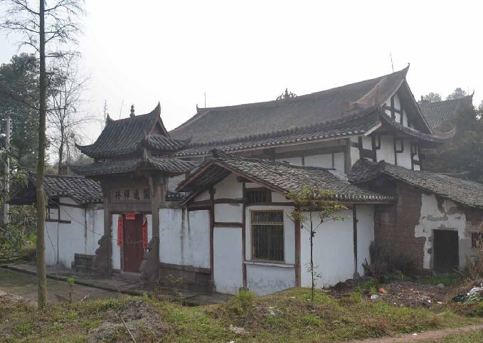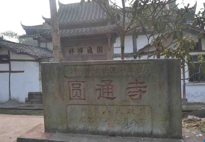 距泸县喻寺场外5里远的山丘之上,建有圆通古刹。据寺中文献载,全寺分为上、中、下三重大殿,占地十数亩,庙宇坐东南,面西北,三层石梯而上,左右厢房、禅房、膳堂,有客厅,其建筑风格宏大,殿堂、楼阁石木结构、斗拱、雀替、莲花层层,布局巧妙,制作精细,独具匠心。上中下殿、山门均为斗拱、雕梁,为典型明代建筑。