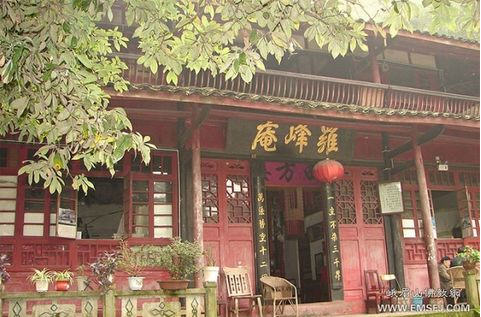 萝峰庵在伏虎寺左侧的萝峰岭下,原为伏虎寺静室,名龙凤庵,又称龙凤辉室,海拔630多米。寺创建于明末清初,数次重建,但规模甚小,三面临山,环境幽静。康熙十一年(1672年),蒋虎臣太史住此修《峨眉山志》,改名萝峰庵,蒋太史死后即葬于此。