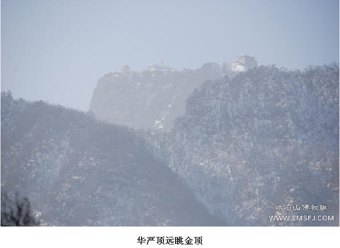 华严四周云遮雾盖,下临天梯,仰瞻金顶之奇,俯览玉笋之秀。附近有九龙井、桂花洞,相传在创建该寺时,因地无水源,老僧梦神指示,就地挖凿,水即涌出。此地风景险奇,可俯视诸寺诸峰,声至遇仙寺、九老洞。
