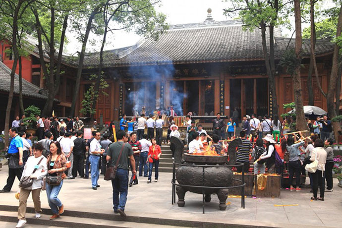 九峰环抱、寺宇轩昂的凌云寺创建于初唐高祖李渊武德年间(公元618—626年),距今近1400年,早于乐山大佛的建造,是中国最古老的寺院之一。“寺出飞鸟外,青峰载朱楼。”唐朝著名诗人岑参曾在《登嘉州凌云寺》一诗中这样描写凌云寺。凌云寺亭塔楼阁依山傍水而造,错落巧构、各具风姿,寺周名花异草、古木参天,浑然一幅得天独厚、独具特色的文化与自然画卷。公元713年,凌云寺寺僧海通禅师“夺天险以慈力,易暴浪为安流”,历时90年,在三江汇流的峭壁上主持凿建了高71米的世界第一大佛——乐山大佛,凌云寺由此成为名扬天下的著名禅院。在之后的岁月中,凌云寺历经风雨,又多次重建、扩建,终至鼎盛。