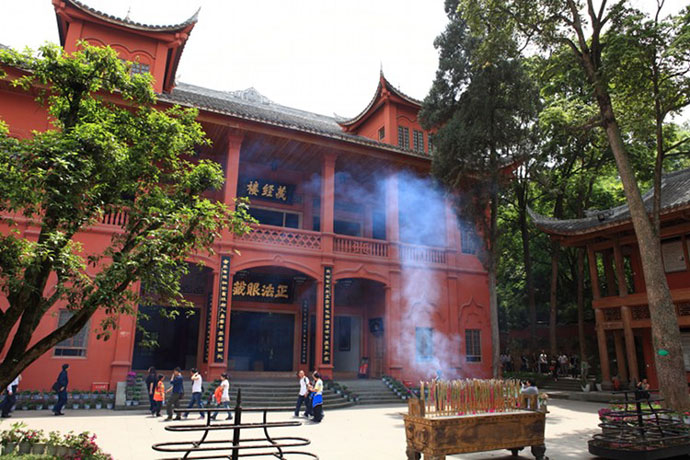 寺内最后一重殿是藏经楼,原为寺内收藏佛教经卷的地方,于1930年新建。从它的结构和外形可以看到近代建筑风格,在寺字中别具一格却另有一番情趣。楼下新辟“海师堂”,塑有大佛建造者海通法师、章仇兼琼、韦皋的全身像,以此寄托后人对他们的敬仰之情。