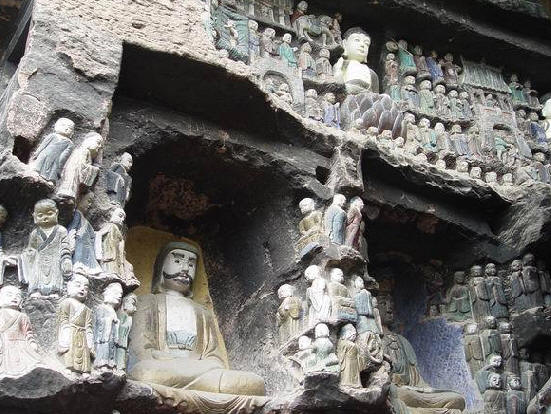 从药师岩山麓沿石级而上,迎面岩首刻有丈许长的“飞凤山”三个笔力道劲的大字。向左拐,右壁上刻有两尊大佛。过石门,即可见右侧岩壁上刻有上千尊雕像,这就是著名的药师岩摩崖造像。正中的主龛为药师佛造像,保存完好;右边各龛为释迦佛、观音和罗汉造像。这些龛的造像较多,也保存比较完好。左边数龛,损坏较大。有的仅遗残迹。苏子瞻、黄鲁直、佛印三像,头部已被打掉。往后,又有一道石门。进石门,有两龛造像分上下两层,相距约十丈,岩壁凿满佛像的雏形,规模不小,但皆未完工。