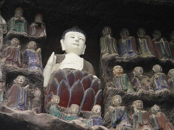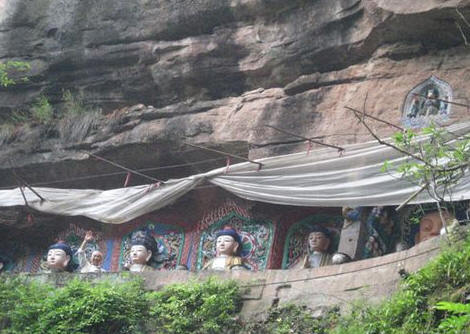 药师岩石窟,位于四川省成都市大邑县城二十一公里的西北山区飞凤山,山势奇绝。岩上有十五窟,三十五龛,大小摩崖造像一千馀尊。据考证,药师岩石窟始建于晚唐开成二年,距今一千多年,比建于公元八九二年的大足石窟还早六十多年,是难得的唐代造像精品。但这一艺术的瑰宝大多鲜有人知。