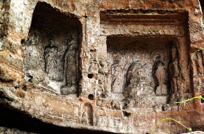 在山间岩缝缓缓行走,药师佛像主龛左边刻有苏东坡、黄庭坚、佛印三尊造像。目前,药师岩现保存有不少宋、明、清代碑刻题记和诗文。