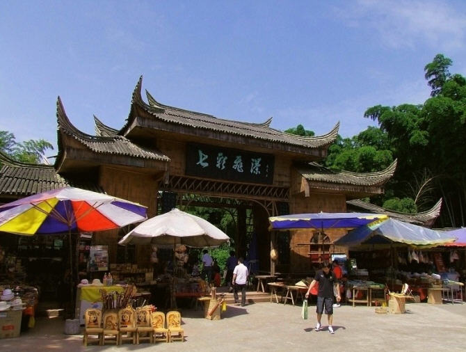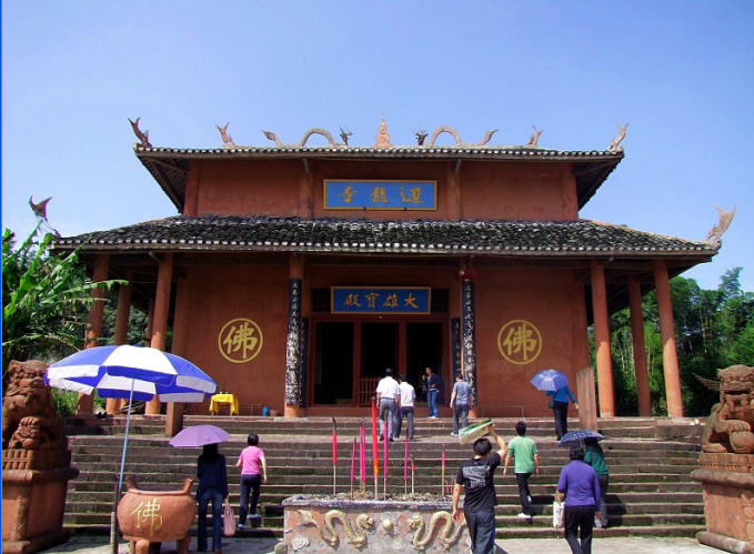 蜀南竹海为国家级风景名胜区,“中国旅游胜地四十佳”之一,位于宜宾长宁、江安两县之间。蜀南竹海原名万岭箐。据传北宋著名诗人黄庭坚到此游玩,见此翠竹海洋,连连赞叹:“壮哉,竹波万里,峨眉姐妹耳!”即持扫帚为笔,在黄伞石上书“万岭箐”三字,因而得名。廻龙寺是其景点之一。