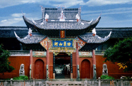 省级文物保护单位禹王宫,现名慧光寺,位于李庄镇中心,建于清道光11年(1831年),坐南朝北,由一主一次两个四合院构成,建筑面积2200平方米,主院有山门、戏楼、正殿、后殿、魁星阁及厢房等建筑,其山门、戏楼均为重檐歇山式顶,檐下饰如意斗拱,整个建筑气势恢宏。大山门外上方的“慧光寺”三个金色大字,是中国佛教协会秘书长周绍良书写的。“大雄宝殿”四字是已故中国佛教协会会长赵朴初生前所书。大山门上面原赞颂大禹治水的匾额和两边的石刻对联,撰、书均出自前清翰林--李庄人张松睛之手。匾额上“功奠山河”四个苍劲古朴、韵味独具。寺内的戏台,是四川保存最完整的古戏台之一,戏台台基上有单钩栏古代戏剧故事浮雕。1942年5月国立同济大学35周年校庆就在这里召开,同济大学和江安国立剧专在这里联合上演曹禺的名作《雷雨》和《日出》。禹王宫是李庄现存最大的清代建筑,这里的九龙石碑远近闻名。禹王宫为抗战中迁驻李庄的国立同济大学校本部驻地。解放后为李庄粮站仓库,1992年恢复佛教活动后,取《无量寿经》中“慧光明净,超逾日月”之意更名为慧光寺。2001年8月,同济大学在此授牌为“四川李庄同济大学爱国荣校教育基地”。