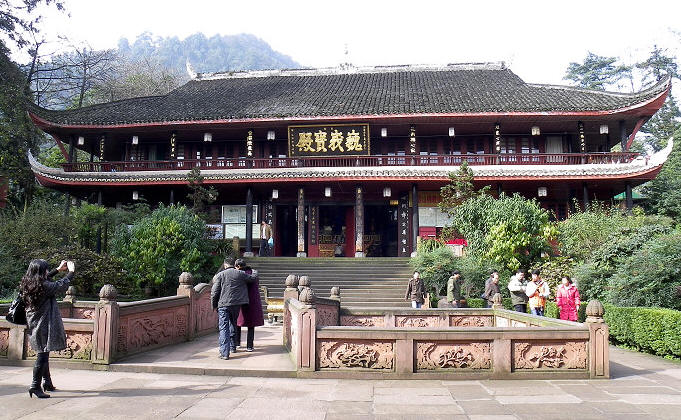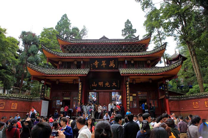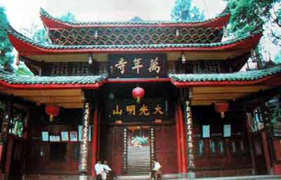 万年寺创建于东晋,时名普贤寺,唐僖宗时慧通禅师重建,更名白水寺;宋代易名白水普贤寺;明代神宗皇帝朱翊钧御题“圣寿万年寺”,简称万年寺,为峨眉山最早的六大古寺之一。