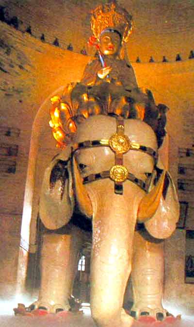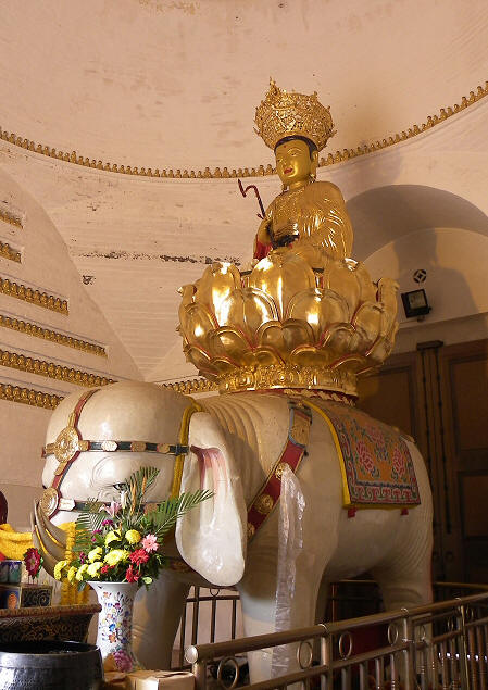 晋隆安3年(公元399年),道安门人慧远之弟慧持,以“欲观瞻峨眉,振锡岷岫”,辞远入蜀,不久上峨眉山创建普贤寺。唐僖宗时(公元887—888年),慧通禅师来山驻锡,以山形象火,寺院屡建屡毁,改“三云二水”压抑火星,将普贤寺改为白水寺,牛心寺改名卧云寺,中峰寺为集云寺,华严寺为归云阁,华藏寺为黑水寺。(黑水寺建在今黄湾乡黑水村的二逗岩上,已废,与金顶的华藏寺是两个寺院 宋太平兴国五年,寺僧茂真和尚奉诏入朝,太宗赐诗嘉奖。归来后,重兴六寺。朝廷派张仁赞赐尚方金三千两,铸普贤铜像供奉寺中,易名白水普贤寺。普贤铜像通高7.85米,重约62吨。佛像高3.64米,趺坐于大象背之莲花座上。莲座高1.39米,直径2.22米。六牙白象四足各踏一莲花磴。普贤菩萨遍体贴金,头戴双层金冠,雕饰精巧。明嘉靖十三年,别传禅师铸铜佛大像三尊,置寺之毗卢殿,铸铜钟三口,最大的一口悬挂圣积寺(现移至报国寺山门对面),小的两口分别安放在毗卢殿和永延寺。万历二十九年(1601年),明神宗朱翊钧为母亲慈圣皇太后祝寿,诏令住持台泉整修寺院,并赐金,筑砖殿罩于普贤铜像之上,题额“圣寿万年寺”。