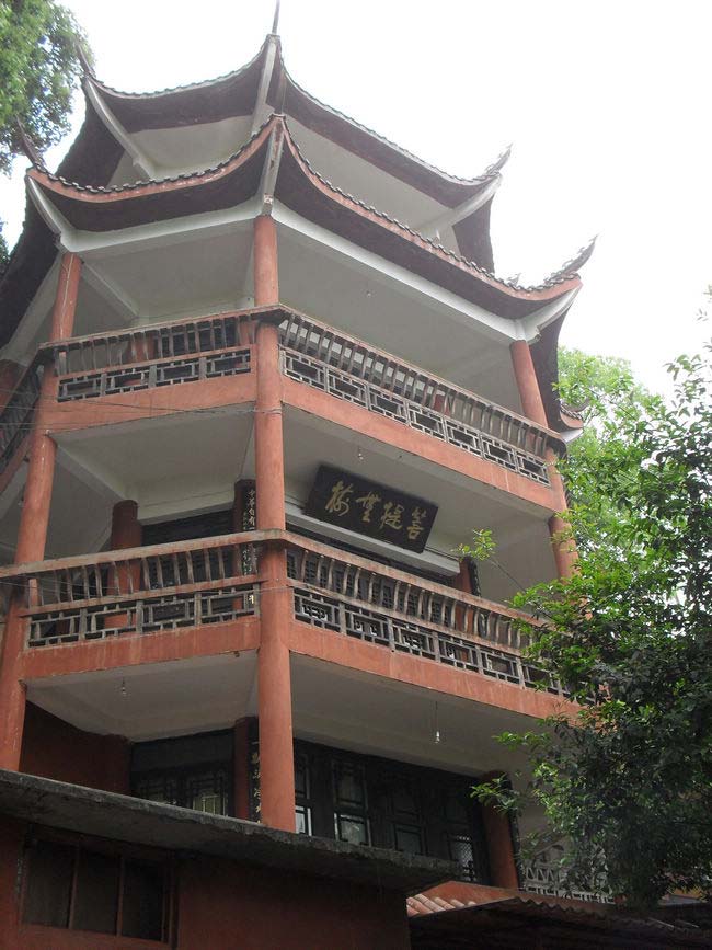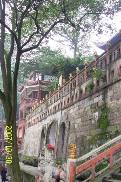 千佛寺正前方--翠屏山腹的真觉寺,建于明成化年间(1465年—1487年),后为翠屏书院(市一中的前身),现为赵一曼烈士纪念馆。千佛寺西(右)面毗邻哪吒行宫;后方山顶有直插云霄的双塔,蹬临绝顶,三江风景尽收眼底。