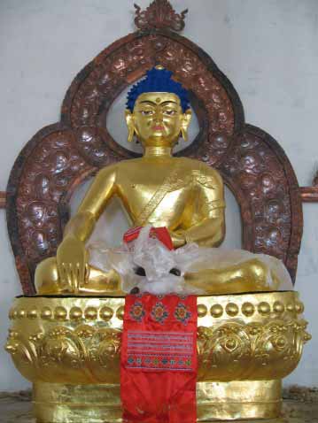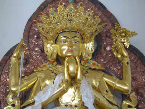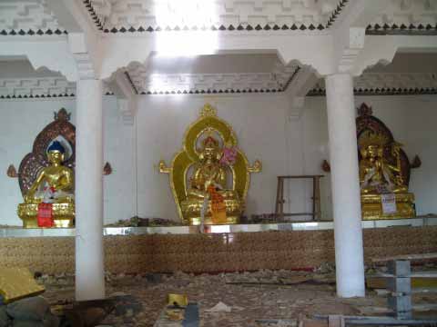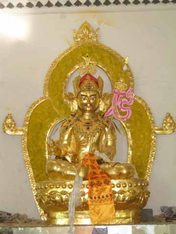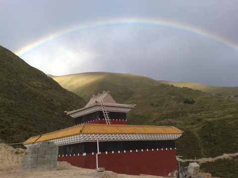 希热坚措尊者经过艰苦的跋涉,一天来到一个地方,周围的山峰象吉祥八宝一样展现在眼前,林木葱郁,泉水清澈,百鸟翔集,这时天空中显现当巴德希所说的境象。希热坚措尊者,在这里修建了“埃旺寺”,埃旺寺所在地是当金多杰林巴护法的神山。