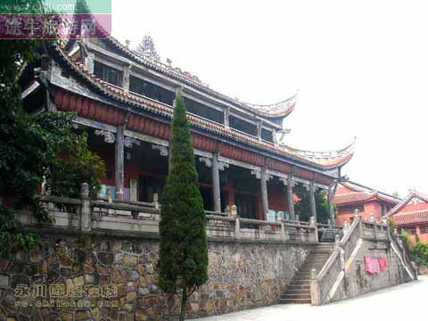 永川大佛寺,又名黄瓜山大佛寺,位于重庆渝西重镇--永川市南郊,建于清初,盛于同治,衰于民国。1983年恢复开放,新建大雄宝殿、天王殿、观音殿及寮房、办公、生活大楼及养心阁(茶园)钟楼等,功能齐全,气势恢宏;释迦牟尼、四大天王、西方三圣、观音菩萨庄严肃穆、栩栩如生。该寺占地20佘亩,依山而建,视野开阔,眺望远山绵绵,近看丘陵起伏,夜观万家灯火;寺内花繁树茂,四季如春,亭台楼阁、回廊蜿蜒,既是佛教点,又是游人观光休闲的一大盛地。