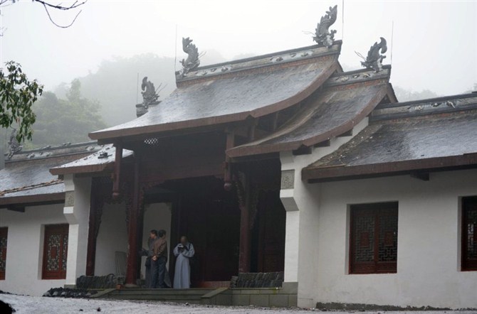 经过紧张而忙碌施工,凤凰寺终于基本完工了。这期间,大家并肩作战,流过血、流过汗,不怕大家笑话我本人还流过泪。山上蒿草丛生,一铲挖下去几乎都是石头,给施工带来很大难度。由于全山的竹子都被林场和笋农承包了,寺院原址自然生长了很多方竹,每砍伐一颗要赔偿300元人民币,再加上所有材料都要从南坡一条烂得不能再烂的泥巴路运上来,还有一些野蛮的百姓,强行承包运输工程,本来很便宜的一块砖,运到山上成本就翻了三倍,如果不让他们来搞运输,就不让车辆从她们的地界上走过。再加上相关部门的一些刁难,施工几起几落,如果要一个词汇来形容的话,那非“艰苦卓绝”而莫属。这其中的艰辛恐怕只有参与建设的人才能够体会得到。