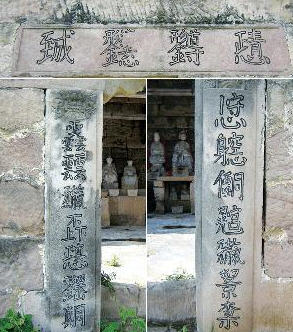 令人难以读懂。由条石砌成的寺门,两侧和门楣上有类似文字的刻画,线条的凹槽被人填成了黑色,十分清晰。远看分明是对联加横批,上下联各7个字,横批4字,除了“横批”的第二个“字”有少许残缺外,其余的“字”都完好无缺。然而,走近了认真看,却让人傻眼了——“楹联”的每个“字”,都不是单纯的一个“字”,而是由几个繁体汉字组合而成,构成了完全无法辨认的另类“字”。例如,三个繁体的“云”字呈品字型堆砌排列;“不”、“上”、“下”三个字组合在一起;“正”、“真”、“心”组合在一起;还有两个繁体的“云”字左右并列,等等,这些“字”都堆砌得复杂古怪,像汉字组合,却无人能读;似图案壁画,又难以捉摸,难道这梁山寺里隐藏着什么玄机?