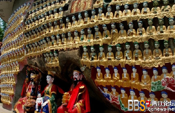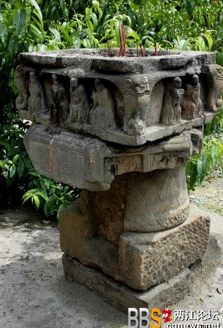 古寺始建于明正统年间,鼎盛时有天王、燃灯、大佛、玉皇、观音、阎君六殿。数百年变迁,旧殿荒败,但留下了往日的布局与无数珍贵的文物。漫步其间,如入艺术殿堂。十余尊明代石雕佛像,神态各异,身姿匀称,衣褶饰物细腻逼真。神殿前,两只香炉均为镂空石雕,莲花、浮云、鸟兽栩栩如生;还有颈系银铃的小白象、憨态可掬的幼雄狮,无不体现出古代工匠独到的人格化构思与精湛的石雕技艺。庭院里还散落着一些明清时代的碑文题刻。明隆庆六年,江津候补知县正堂高谔的重修朱羊寺题记最为完整。