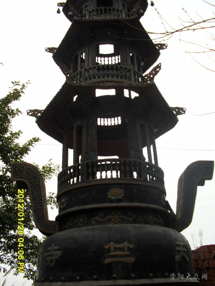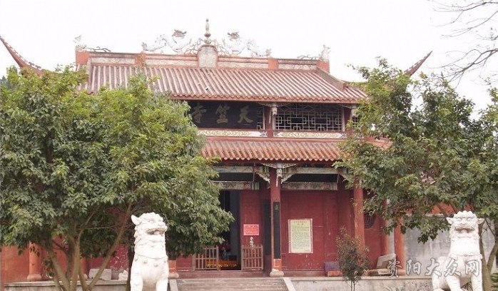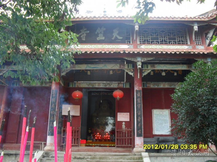 人民共和国成立后,经过减租退押和土地改革运动,僧人还俗务农。1953年佛像被毁,寺庙改为村小学校址。1978年12月,党中央召开十一届三中全会以后,乐至县委、县人民政府落实宗教政策。1994年善男信女集资捐赠,在原址动工复建寺庙。挖基时获一封口陶缺罐,内盛满净水,清彻透明,香气四溢。寺管委会根据佛教始祖诞生于古天竺国,故命名为天竺寺。乐(至)蓬(大英县)公路绕山腰而过。有公共汽车直达寺下,交通便利。