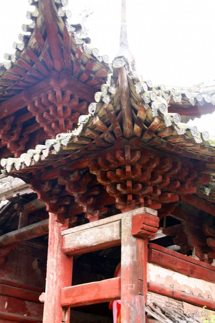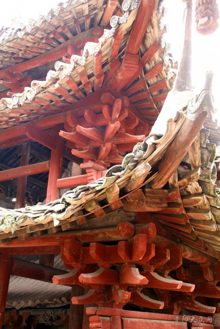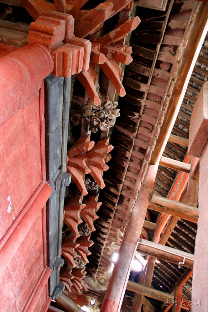 听得这个简单明了的介绍,仰视着寺内美轮美奂的建筑物,拥着一种猎奇、敬仰的心情进入木门寺内,一种说不出的清与静,穿过几百年的时空拂在我身上,渗入心灵深处,使人顿感凉爽。而这种凉爽与空调下、凉风里的感觉完全不同,这是一种从心底升起的凉爽,然后通过血液和灵魂流淌在身体的每一条血管、每一个细胞。蝉儿此起彼伏的声音,若绵绵不绝的梵音一般深入每个人心扉,令人忘掉烦热和苦闷,进入一片空灵之中——如佛家的内窥五蕴,照见四大皆空;若道家的清虚无为,扶摇直上九千里……不由细细的品味着先祖给我们留下的精美建筑来。