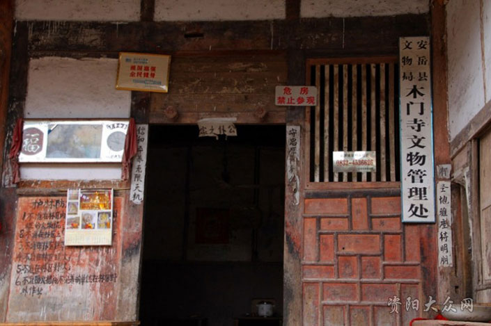 木门寺位于安岳县城以北20公里的八庙乡石鼓片区的清凉山麓,始建于明代永乐年间。寺前立有石坊,上书“东普禅林”。石亭内葬明代高僧无际禅师尸骨(公元1380-1446年)。无际禅师俗姓莫氏,讳了悟,法号无际,潼川府安岳白鹤岩人,著有《道林录》流传于世。