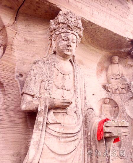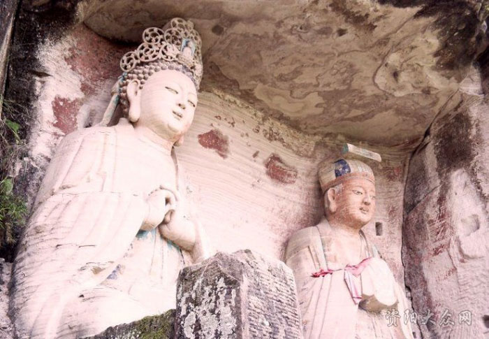茗山寺石刻是安岳与大足、潼南三县交界上保存较为完整的一处北宋摩崖造像,以规模宏伟 壮观,妙用力学原理而著称。