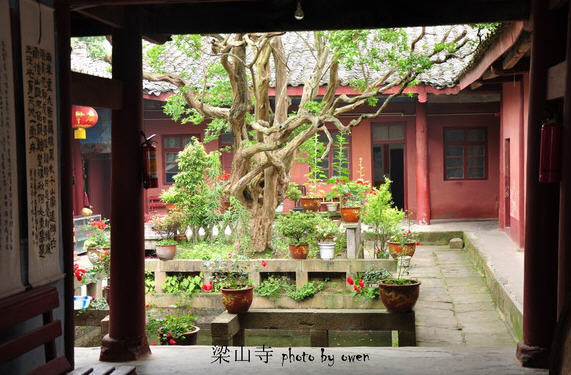 山路尽头,一座古寺耸立,门额大写“梁山寺“三个大字。梁山寺是梁武帝萧衍于公元551年出家修行之