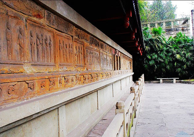 寺内陈列的宋代墓室浮雕石刻,刻有古代“二十四孝”图和民间伎乐歌舞图,具有浓郁的民族风格和地方特色。宋墓浮雕石刻人物,是研究宋代美术史的宝贵资料;石刻伎乐图为研究南宋大曲、杂剧的发展提供了不可多得的形象资料;石刻生活图是当时当地人民生活的生动再现;石刻中仿木结构的门、窗、斗拱等,又为我们研究四川地区的宋代建筑保存了重要的史料。