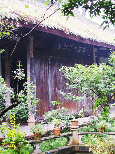 走进蜀王消夏行宫,红墙碧瓦,疏疏古柏饰一道门楼,门楼外是一道屏墙,谦谦地进门,门内又是一道屏墙,折过屏墙,花光树影中,就亭立着一个冰肌玉骨的美丽女子,后背的双手执一卷诗文,史载花蕊十七岁就压倒三千粉黛,艳名传遍五代十国,然而她又是一代贤妃,她协助蜀王修明法治,颁刻“官箴”,刻列“石经”,刻印经史,设置“匦箱”(如今日的检举箱),广开言路,建立中国历史上第一个国家画院,编成中国第一部词选《花间集》,在成都围城四十里城墙上种植锦色木芙蓉花。此处幽美,难怪花蕊出那么多好诗。幽幽馨香中赏了前面红梅,转身拱门进小园,园内奇花异草围一雕花玉池,想池内定是春有游鱼,夏有睡莲,秋有浅荷,细看,冬亦有梅影。沿左侧石级上有遗爱堂,看党内花蕊夫人凤冠霞披,怡坐榻前,秀女左右执长扇,二书童两旁,一擎笔,一举纸,大背景为祥云缭绕,背景两边彩凤饰了对联: