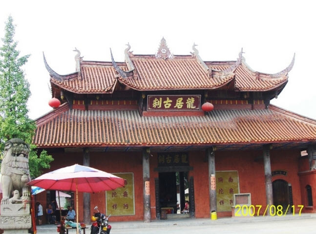 龙居寺为隋代古刹等慈院,驻蜀北什邡龙居山,虽有神龙潭水、高柏拥翠、银杏参天、水阁奇花的记载,听说三叠水石头山门门柱上还有一幅对联:“怪石乱泉声,寺拥东西南北客;丛林浮雨色,云藏上下古今诗。”