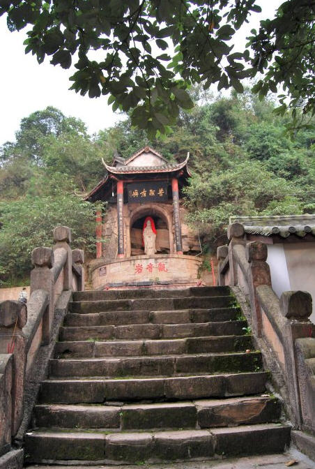 顺着韦驮殿往上走,来到了“三凤亭”,亭虽不大,隐逸在林荫环抱中却显得典雅别致。当年“灵石”显现后,“从此文运吾家开,连翩三凤齐飞来”,继李化楠之后,李调元、李鼎元、李骥元相继考中进士,均被钦点为翰林,“三凤”翩翩齐飞,观音岩更是名声大震,“通都大邑辐辏而来”。在观音岩众多景致当中,“三凤亭”是比较受游人青睐的一个,许多游客都偏爱相聚亭间,临风抒怀,心旷神怡,别有一番情趣。大家不妨亲历其间,闭目养神,感受一下空气中是否还残留着淡淡的文学气息。