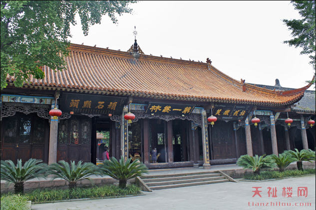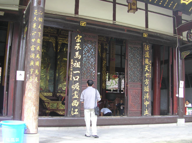 还有一尊者,左手执镜,右手撕开慈善眼的老脸皮成一条缝,露出的却是一眉清目秀的少年 脸蛋,这是最有深味的一尊了。 在罗汉寺,你可以在梅意掩映的罗汉殿前过厅里喝茶,你可以到说法堂听经。罗汉寺的道场 是与八祖禅场马祖一脉相承的(称马祖道场)。由于马祖将佛教禅宗的特色充分贯彻在具体的 日常生活中,突破修持者的自我陶醉倦怠现象,而把禅宗重新导向现实的立场,禅的实践目标,不在苦行,而在极其乐观的“乐 道”生活,禅与智慧,禅与生活有机地结合,受到日本佛界的尊崇。